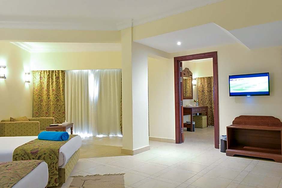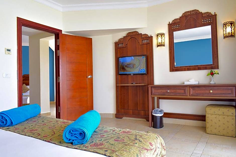 This family room provides a pool with a view. The spacious family room offers air conditioning, a mini-bar, a balcony with pool views as well as a private bathroom featuring a bath or a shower. Designed as One large bed room interconnected with One twin beds room & Two Terrace.